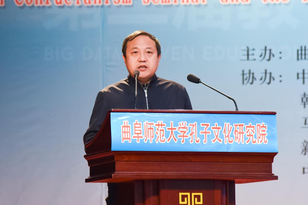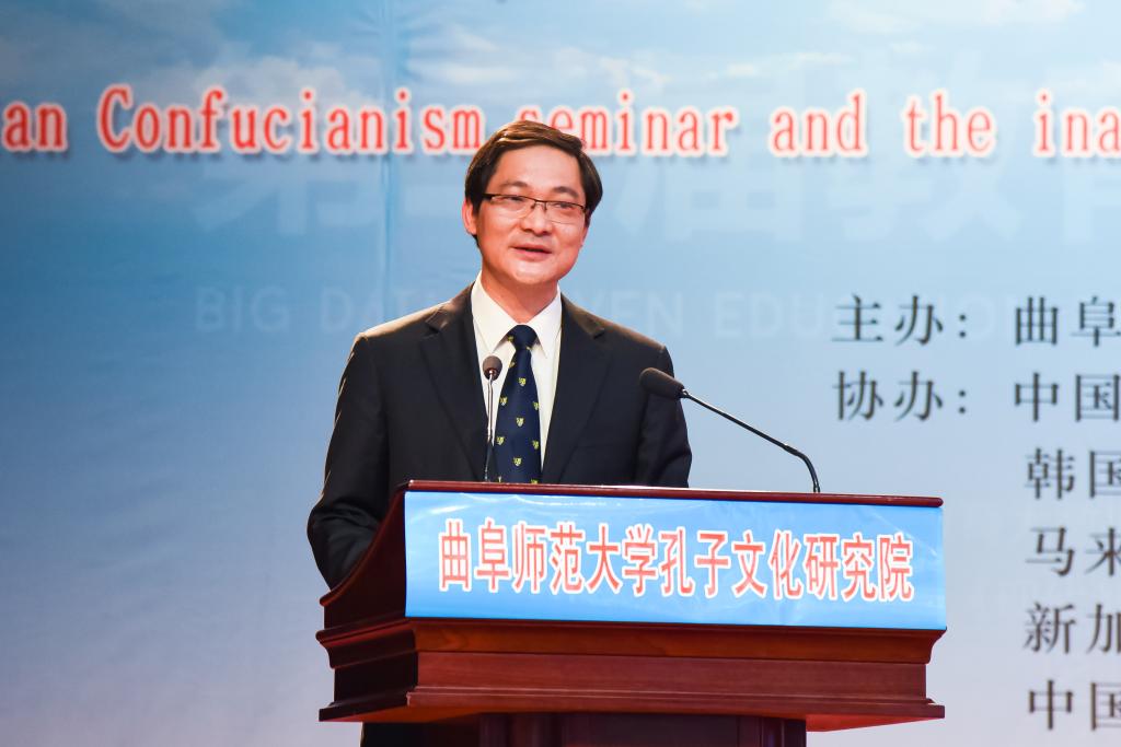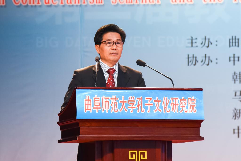 夏云杰在致辞中对大会的召开表示热烈祝贺,对中外来宾表示诚挚欢迎,对大会协办单位表示衷心感谢,介绍了学校作为一所因孔子而生的大学,在传统文化和孔子儒学的传承创新等领域走出的特色发展之路和取得的一系列成就。他说,在习近平总书记视察曲阜讲话四周年之际,各位专家学者齐聚曲阜共商东亚儒学发展与未来、共建儒学研究与传播平台,充分表明了大家落实总书记指示的信心和决心,对于彰显儒学的时代价值、推动世界儒学在新时代的创新发展,必将产生极大的促进作用。本次盛会也必将成为增进友谊、深化合作、共谋发展的新起点。