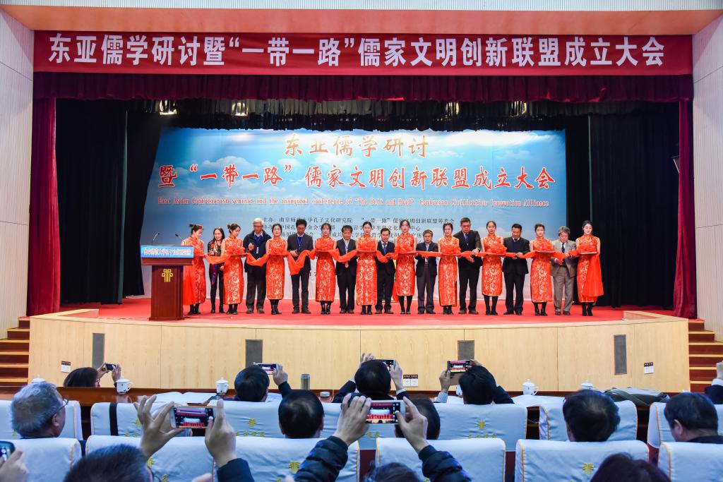开幕式上,夏云杰、杨庆存共同为“一带一路”儒家文明创新联盟揭牌。印度尼西亚总统大学校长Jony O. Haryanto、韩国儒教学会总务理事元勇准、塔里木大学西域文化研究院院长廖肇羽、韩国成均馆大学儒教文化创新研究所所长金圣基、新加坡南洋理工大学孔子学院院长梁秉赋、日本岩手大学平泉文化研究中心主任薮敏裕、马来西亚拉曼大学中华研究院副院长郑文泉、石河子大学文学艺术学院副院长王晓鹃,共同为联盟成立剪彩。