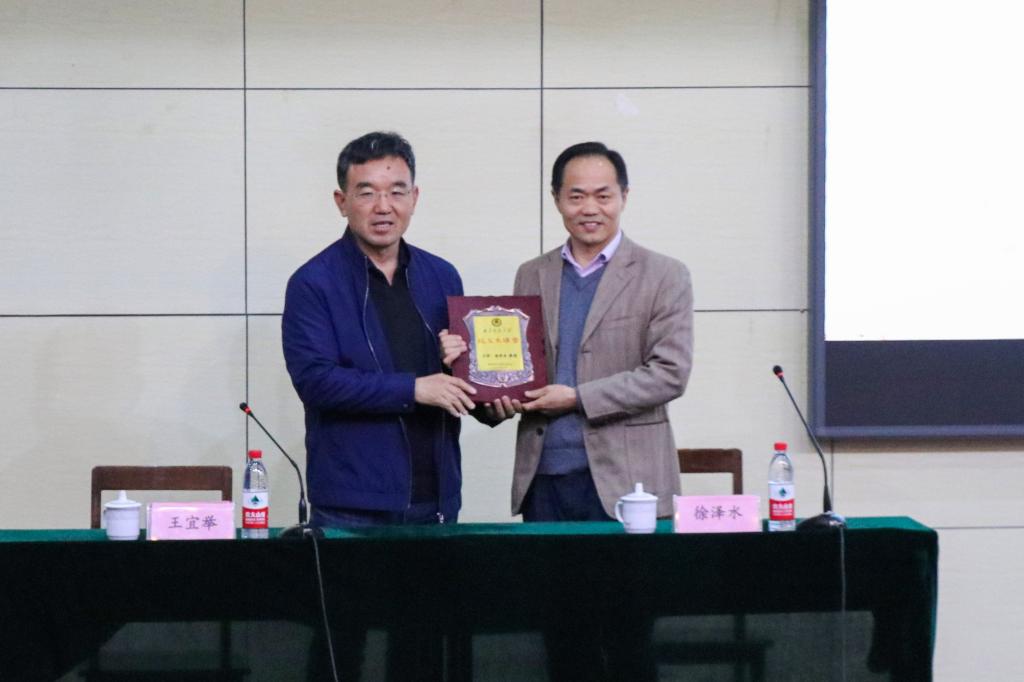 报告会上,王宜举教授代表学校向徐泽水教授颁赠了“校友大讲堂”铭牌,希望他能够常回母校交流。徐泽水教授表示,作为从江南在线登录入口走出的学子,自己将不忘母校的培育之恩,不遗余力地为母校的人才培养和学术梯队建设提供帮助与支持。