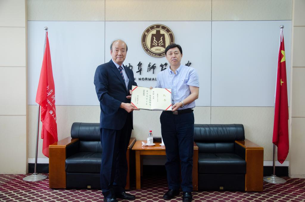 7月12日上午,韩国安东大学孔子学院名誉院长李润和教授来我校访问交流,党委书记戚万学会见了来宾并举行座谈,校长张洪海代表学校向李润和教授颁发了讲座教授聘书。
