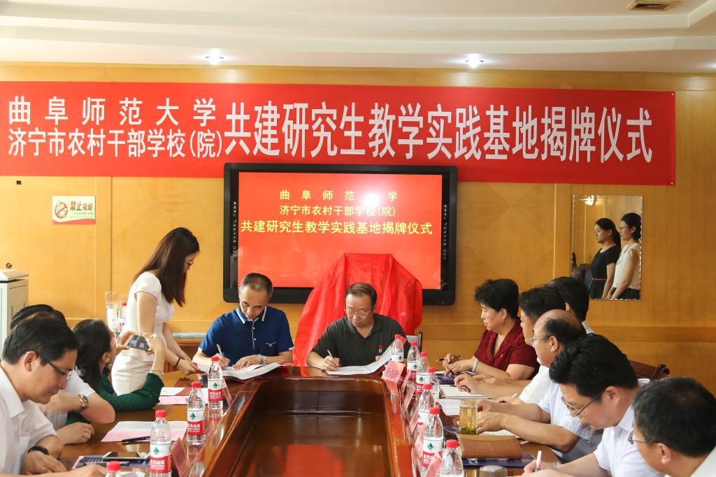 7月5日上午,我校研究生教育实践基地落户济宁市农村干部学校(院),副校长夏云杰与中共济宁市委组织部副部长李功川共同为基地揭牌。我校研究生处、法学院负责人,中共济宁市委组织部、济宁市教育局、济宁市农村干部学校(院)等单位负责人,以及济宁市农村干部学校(院)教师代表参加了基地揭牌仪式。