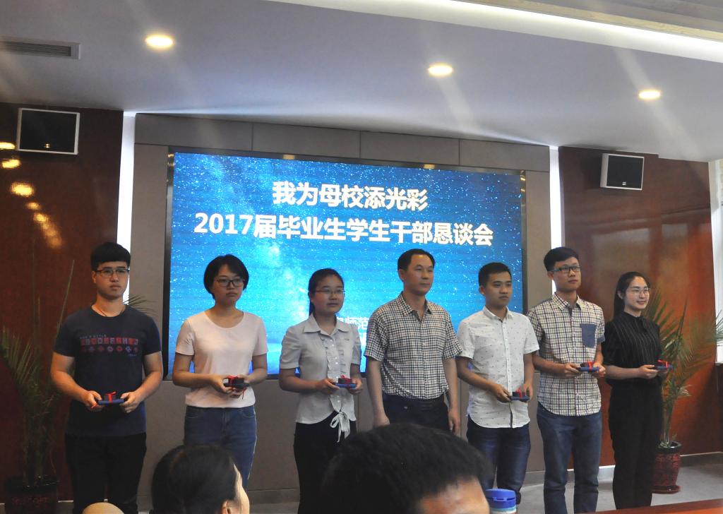 恳谈会上,辛杰还向毕业生学生干部赠送了学校纪念品。