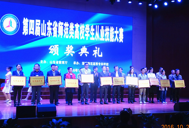 山东省师范类高校学生从业技能大赛由省教育厅组织,从2013开始举办,旨在全面提高师范类学生实践应用能力和职业素养,检验师范生培养质量,调动师范类学生专业学习的积极性、主动性和创造性,进一步提高求职技能和就业竞争力,促进教师教育的发展。本届大赛分学前、小学、初中、高中4个学段,语文、数学、英语、物理、化学、生物、政治七个学科,比赛项目包括说课、模拟上课、答辩三个部分。我校学生参加了小学学段英语、数学、语文,初中、高中学段语文、数学、英语、物理、化学、生物、政治等学科以及学前教育的决赛。