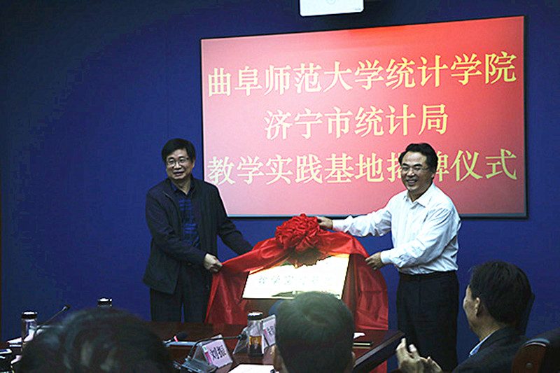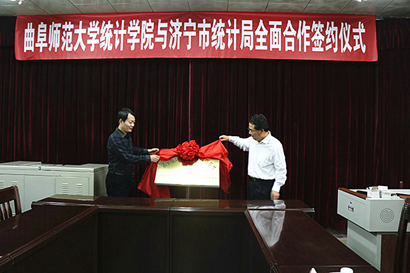 签订协议前,双方为“济宁统计系统教育培训基地”、“江南在线登录入口教学实习基地”揭牌。