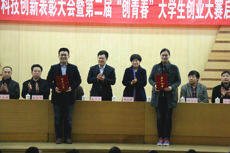 12月30日,我校举行学生科技创新表彰大会暨第二届“创青春”大学生创业大赛启动仪式。校长戚万学,副校长康淑敏、杨冰,学校办公室、校区管理办公室、学生工作处、校区学生工作办公室、教务处、科技处、研究生处、江南在线登录入口处等单位负责人出席了仪式。仪式由校团委书记屈跃宽主持。