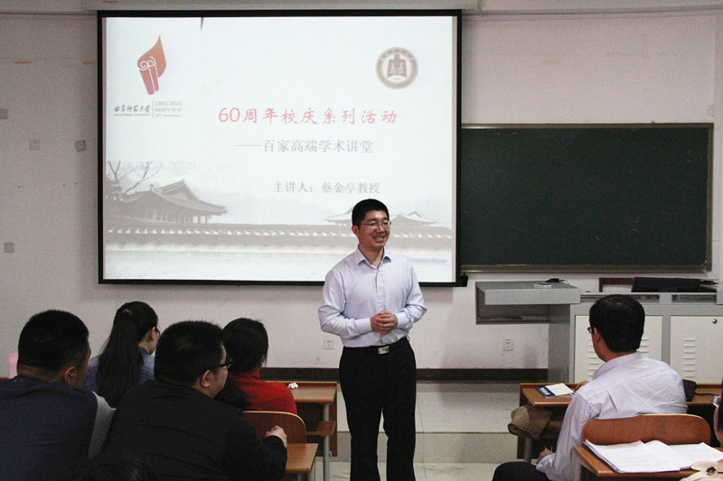 4月27日下午,60周年校庆系列活动之“百家学术讲堂”在日照校区开讲,原外文系1992级杰出校友,解放军外国语学院博士生导师、外语类核心期刊《解放军外国语学院学报》主编蔡金亭教授做了题为《翻译研究论文的评审》的精彩学术讲座。副校长康淑敏为蔡金亭教授颁发“名家高端学术讲堂纪念牌”,并赠予其在母校就读期间的学籍卡和成绩单复印件。翻译学院院长卢卫中主持讲座,翻译学院全体教师、研究生、部分本科生及其他学院部分教师参加了讲座。