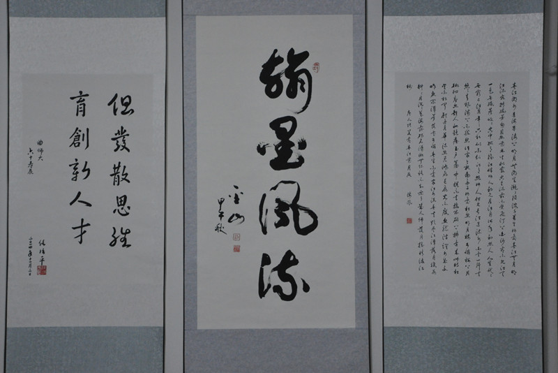 在我校六十周年校庆及元旦来临之际,12月23日,由离退休工作处主办的“贺新年、迎校庆”2015离退休教职工书画展正式开展。副校长扈庆学、离退休老同志、各单位负责人、教师以及书画爱好者参观了展览。