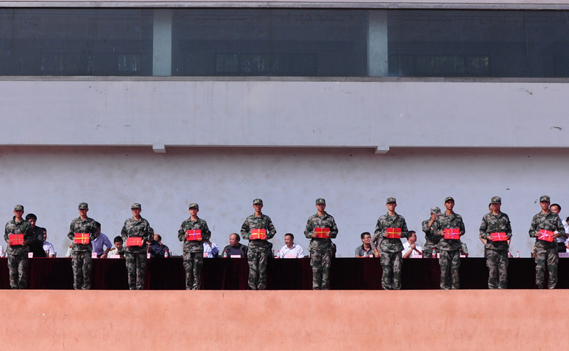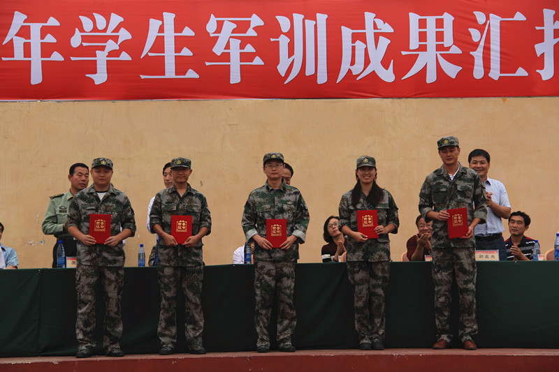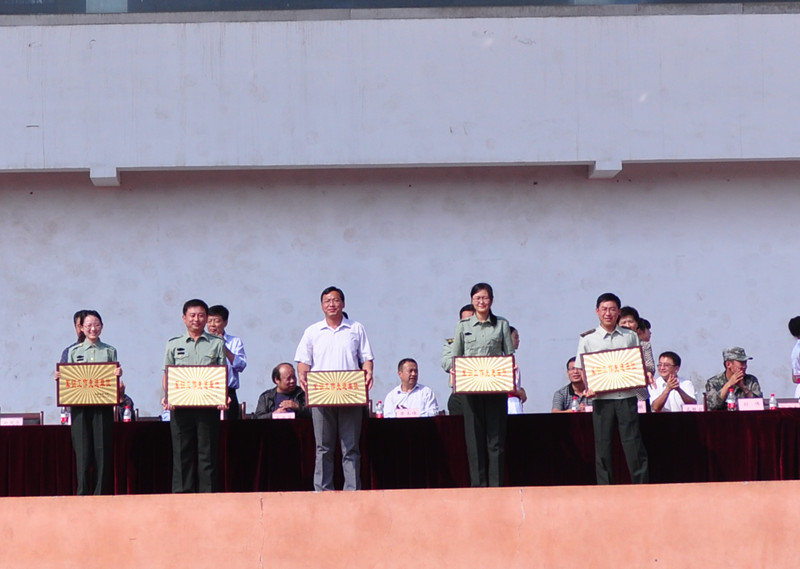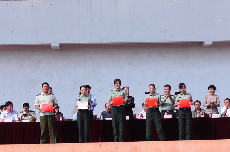 大会宣读了军训先进单位和个人名单,在主席台就坐的领导为获奖代表颁发了奖牌和证书。