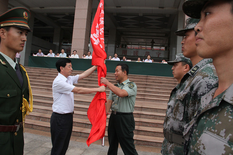 济宁预备役炮兵师二团团长李健、山东陆军预备役炮兵师一团副团长李建勋代表承训部队讲话,对全体帮训部队、承训官兵和全体参训新生提出了要求。