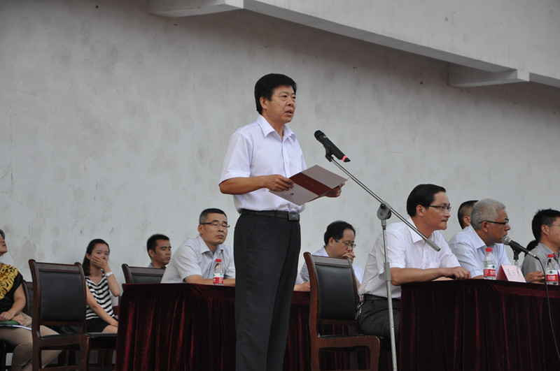 我校隆重举行2014—2015学年开学典礼、新生军训动员暨教师节庆祝大会