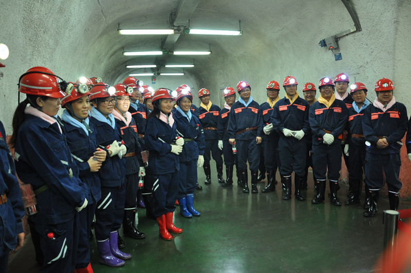 仪式后,青年教师参观了煤矿高度指挥中心、宣传长廊,了解矿区文化建设。并换上矿工服、戴上安全帽,乘坐罐笼下到600米深的井巷,深入到井下作业现场进行实地体验,实际感受现代煤矿开采过程。