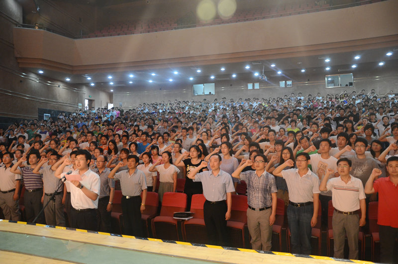6月18日、19日下午,值中国共产党建党九十二周年之际,我校举行了新党员入党宣誓仪式。党委副书记刘新生、纪委书记郭辰夫分别出席两校区入党宣誓大会并讲话,大会分别由组织部部长马恩,校区管理办公室副主任、工会副主席曹明亮主持。