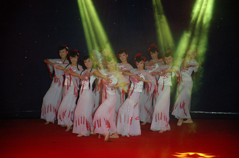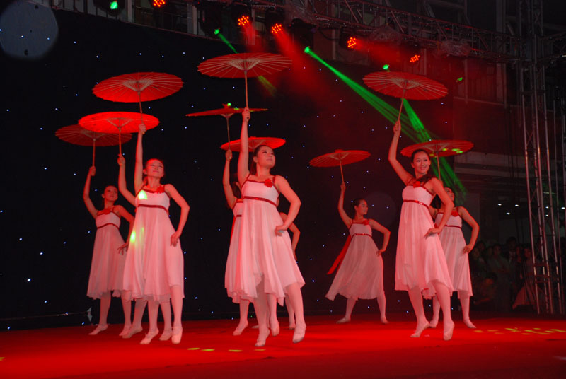 夜雨微凉,阳光会场人潮攒动。本次晚会共计11个节目,涵盖民族舞、当代舞,多样化的舞风交相融合让观众共同享受了一次华丽的视觉盛宴。晚会在2011级全体女生带来的民族舞《花儿为什么这样红》中拉开序幕;当代舞《小城雨巷》在微凉夜雨中显得格外唯美;原创舞蹈《街区黑客》热情活泼,动感十足,赢得观众阵阵欢呼;当代舞《南京亮》再现战争的残酷与悲怆,极具震撼力。水汽氤氲,光影闪烁,绚丽的舞台效果为晚会更添一份魅力。现场观众激情洋溢,掌声和喝彩声经久不息。