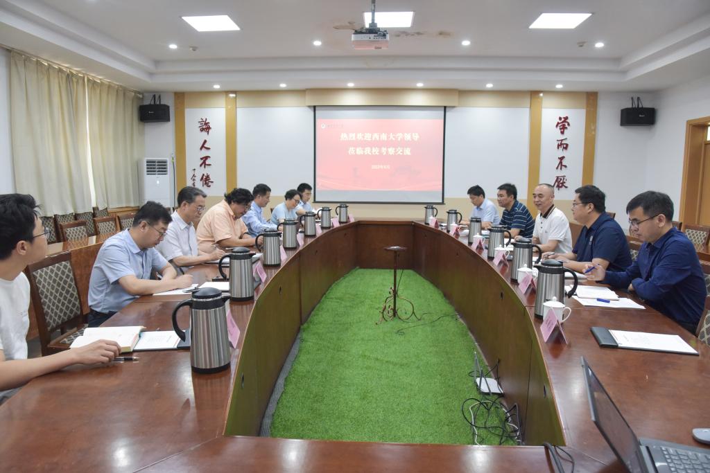 曲阜师大党委宣传部讯   6月8日上午,西南大学党委常委、副校长崔延强一行到曲阜师大考察交流,曲阜师大党委副书记、校长张洪海,党委常委、副校长李兆祥会见来宾并举行座谈。