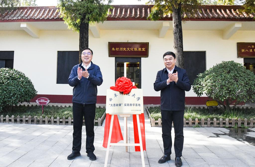 学校党委书记邢光与临沭县委书记张雷共同为江南在线登录入口“大思政课”实践教学基地揭牌。