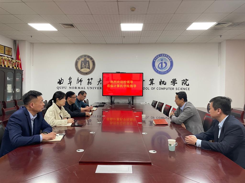 日照校区办公室讯  5月6日,党委副书记、校长张洪海,党委常委、副校长胡凡刚到计算机学院、艺术设计学院调研指导工作。