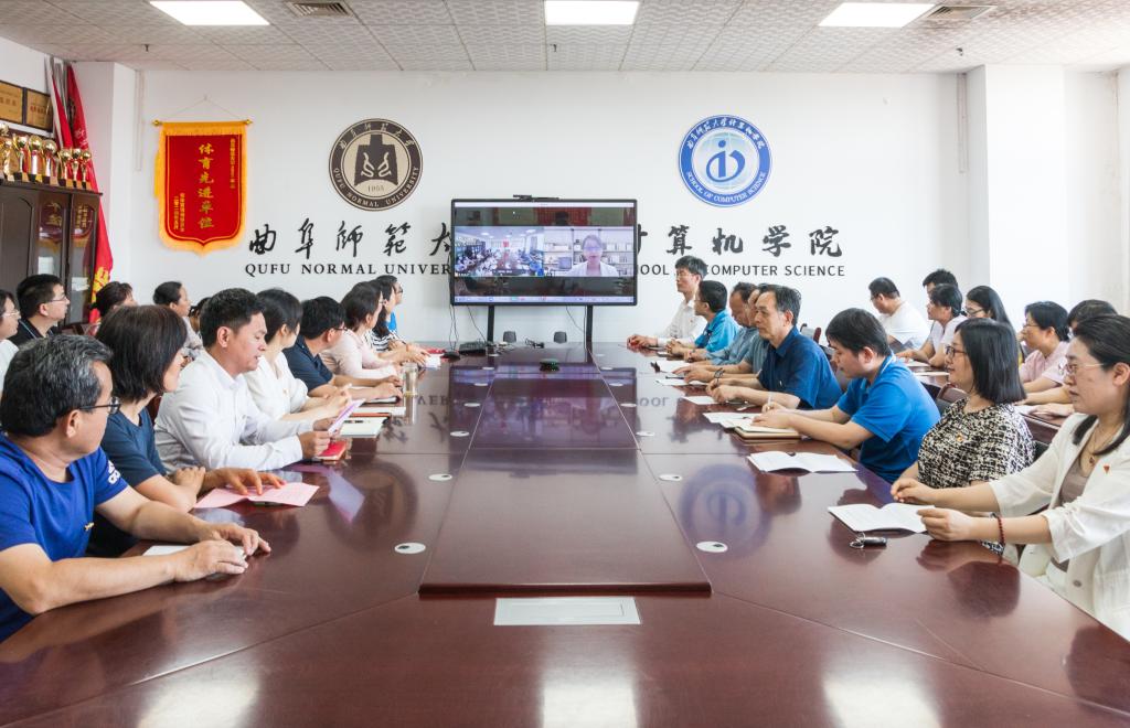 计算机学院讯  为深入贯彻落实习近平总书记关于学校思政课建设的重要指示精神,全面落实立德树人根本任务,不断推动课程思政建设改革创新,6月27日,曲阜师大计算机学院教工第一、第二党支部联合开展了“代码中的思政课”主题活动。计算机学院教工第一党支部书记董兆安主持活动。