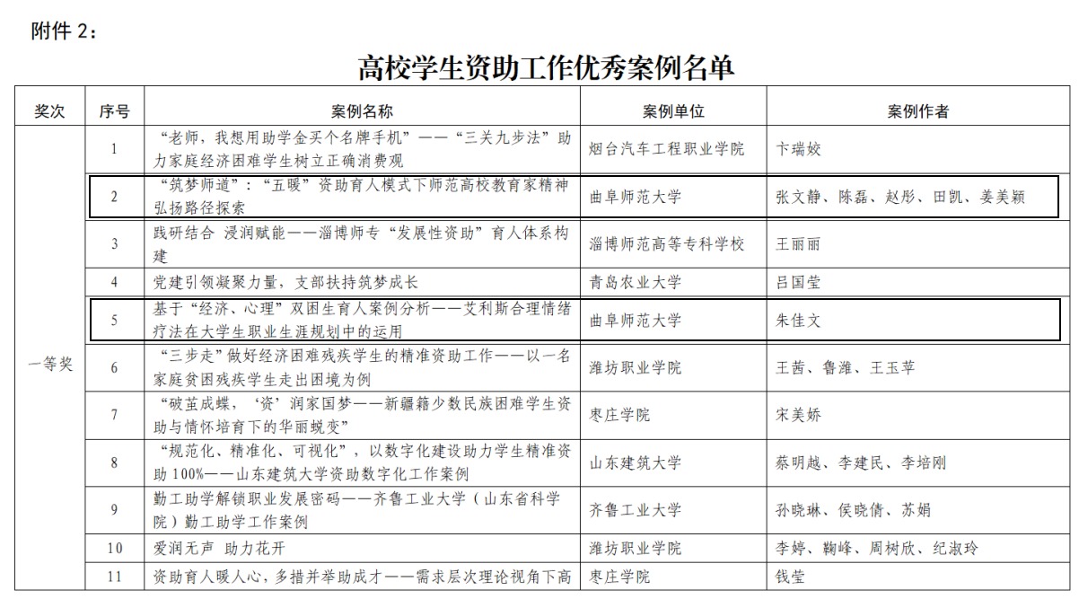 据悉,本次年会还对2024年山东省学生资助优秀案例进行了表彰。本次资助工作案例征集共收到地市工作案例75个,高校工作案例147个。学校推荐上报的2个工作案例均获得一等奖,获奖数量和质量均在全省各高校中名列前茅。