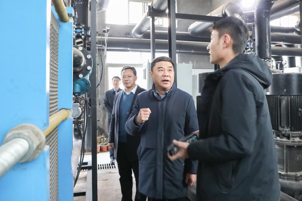 “进站温度是多少?出站温度能达到多少?”邢光在校园供暖换热站详细询问了设备运转情况,强调要加强设备巡检,确保技术人员能够及时到位解决故障,保障大家过好一个温暖的春节。