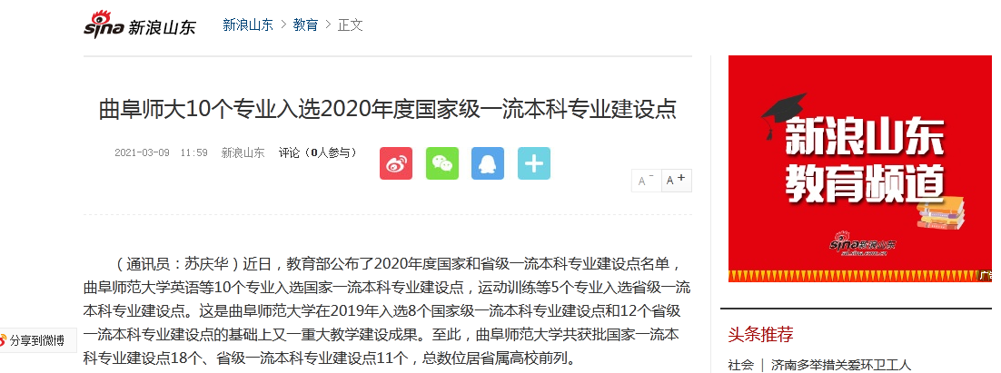 新浪网报道链接:http://sd.sina.com.cn/edu/2021-03-09/detail-ikknscsh9735532.shtml?qq-pf-to=pcqq.c2c