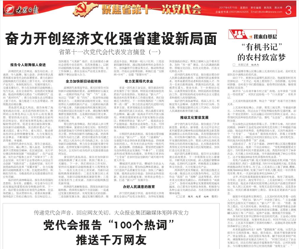 《大众日报》报道链接:http://paper.dzwww.com/dzrb/content/20170615/Articel03002MT.htm