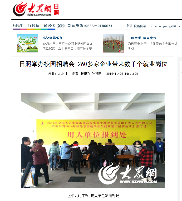 大众网报道链接:http://rizhao.dzwww.com/rzxw/201611/t20161126_15197580.html