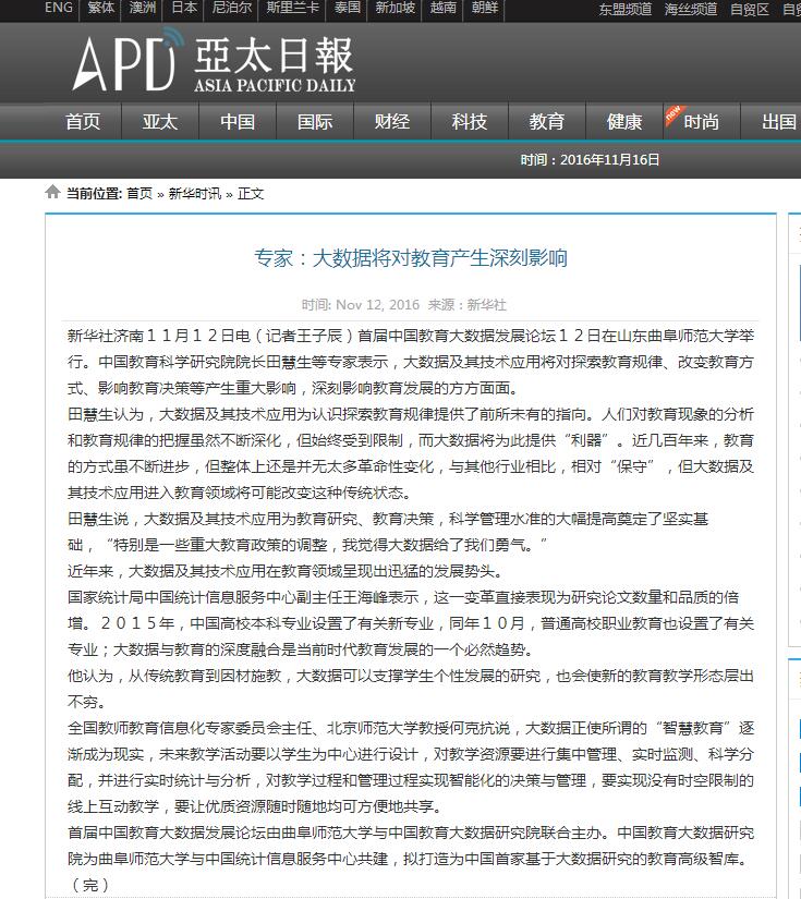 亚太日报:大数据将深刻影响教育格局