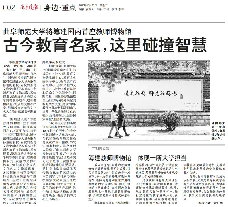 《齐鲁晚报》报道链接:http://epaper.qlwb.com.cn/qlwb/content/20161018/PageH02TB.htm