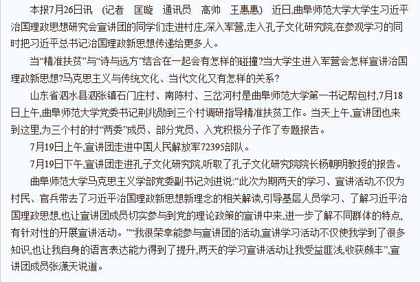 齐鲁晚报:曲师大大学生宣讲团进军营入农村传递新思想