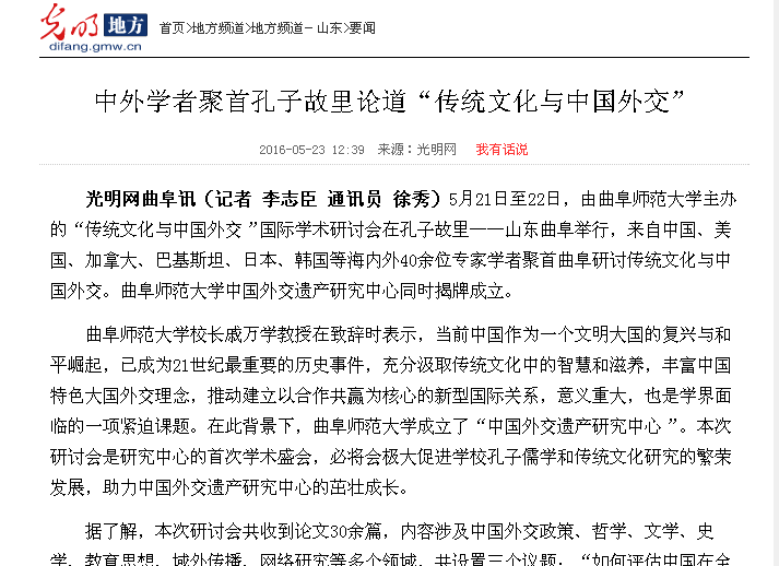 光明网:中外学者聚首孔子故里论道“传统文化与中国外交”