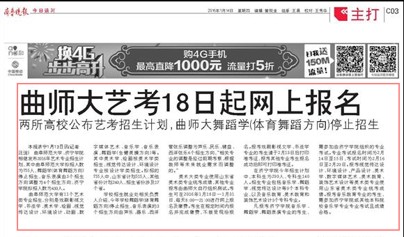 齐鲁晚报:曲师大艺考18日起网上报名