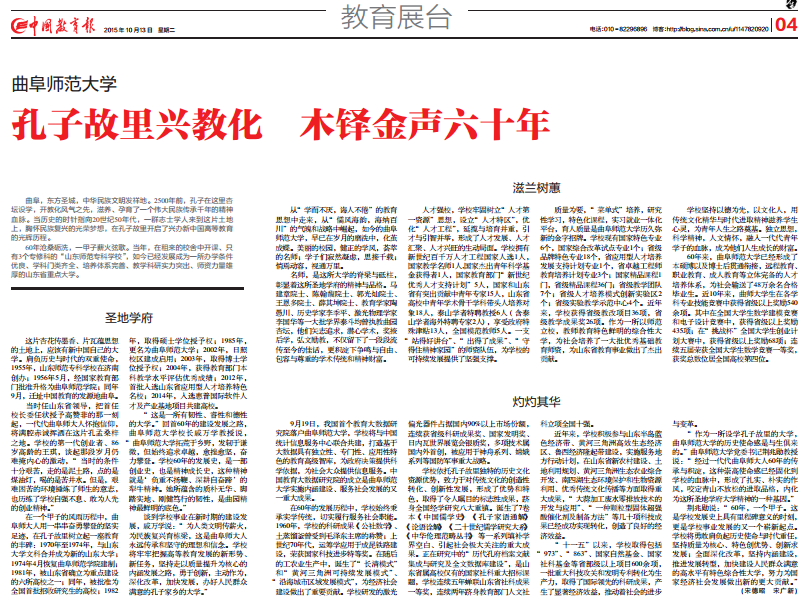 中国教育报报道链接:江南在线登录入口 孔子故里兴教化 木铎金声六十年