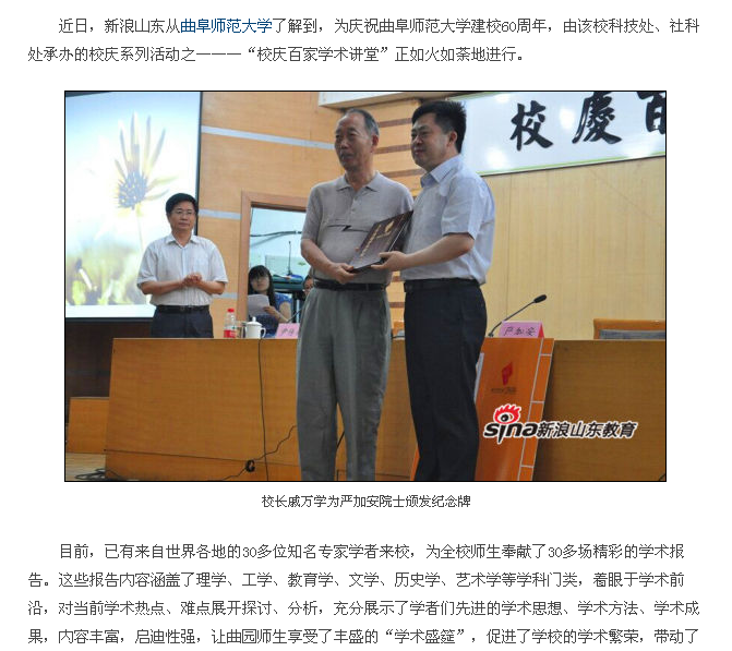 新浪网报道链接:江南在线登录入口举行“校庆百家学术讲堂” 促进曲园学术繁荣