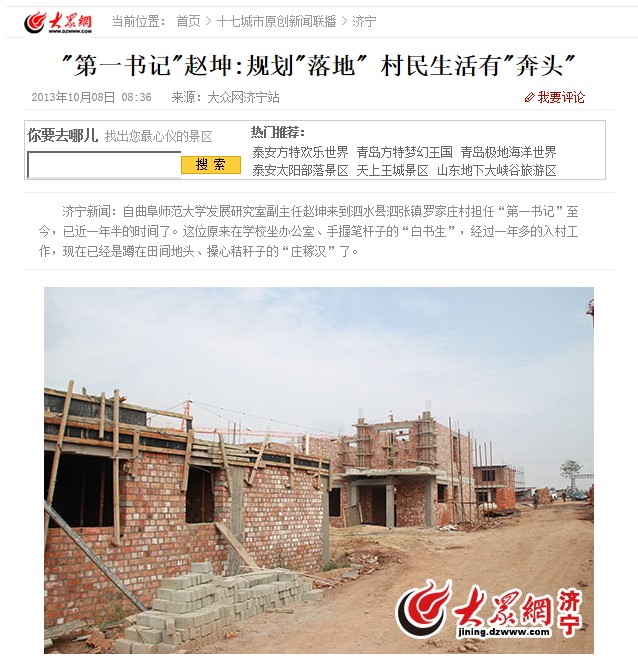 大众网:"第一书记"赵坤:规划"落地" 村民生活有"奔头"