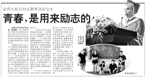 齐鲁晚报:曲师大校长傅永聚寄语毕业生:青春,是用来励志的
