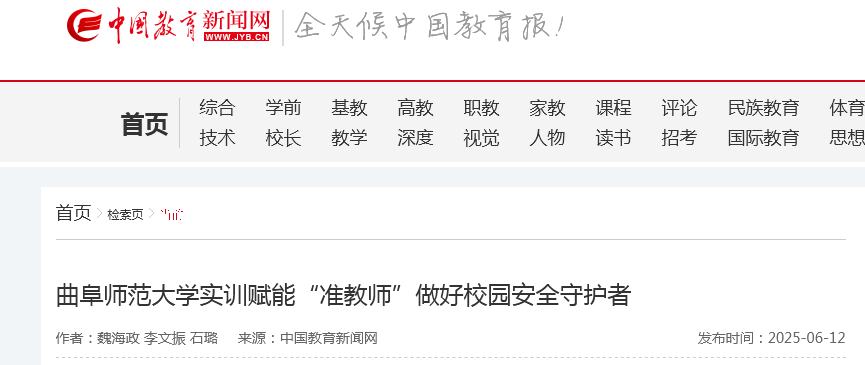 6月12日,中国教育新闻网以《江南在线登录入口实训赋能“准教师”做好校园安全守护者》为题,报道了学校联合济宁市消防救援支队、日照市消防救援支队,举办从教毕业生“消防安全明白人”固本强基培训班的创新实践。
