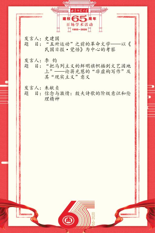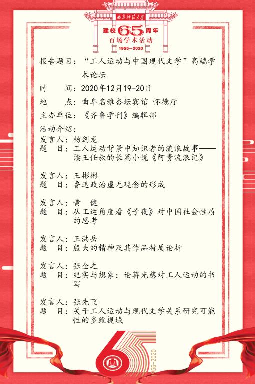 建校65周年校庆百场学术活动-“工人运动与中国现代文学”高端学术论坛