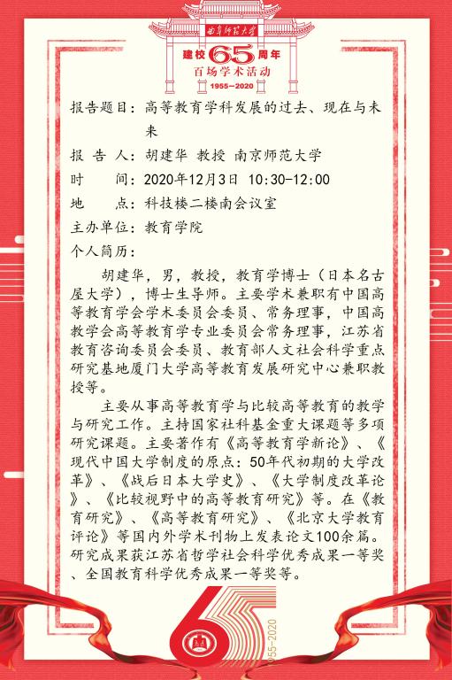 建校65周年百场学术活动-南京师范大学胡建华教授