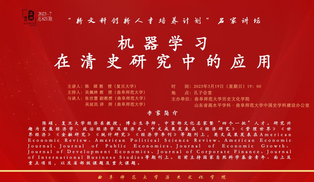 洙泗讲堂预告| 陈硕:机器学习在清史研究中的应用