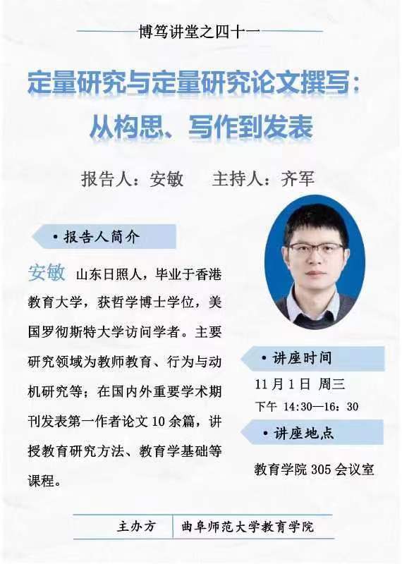 博笃讲堂预告| 安敏:定量研究与定量研究论文撰写:从构思、写作到发表
