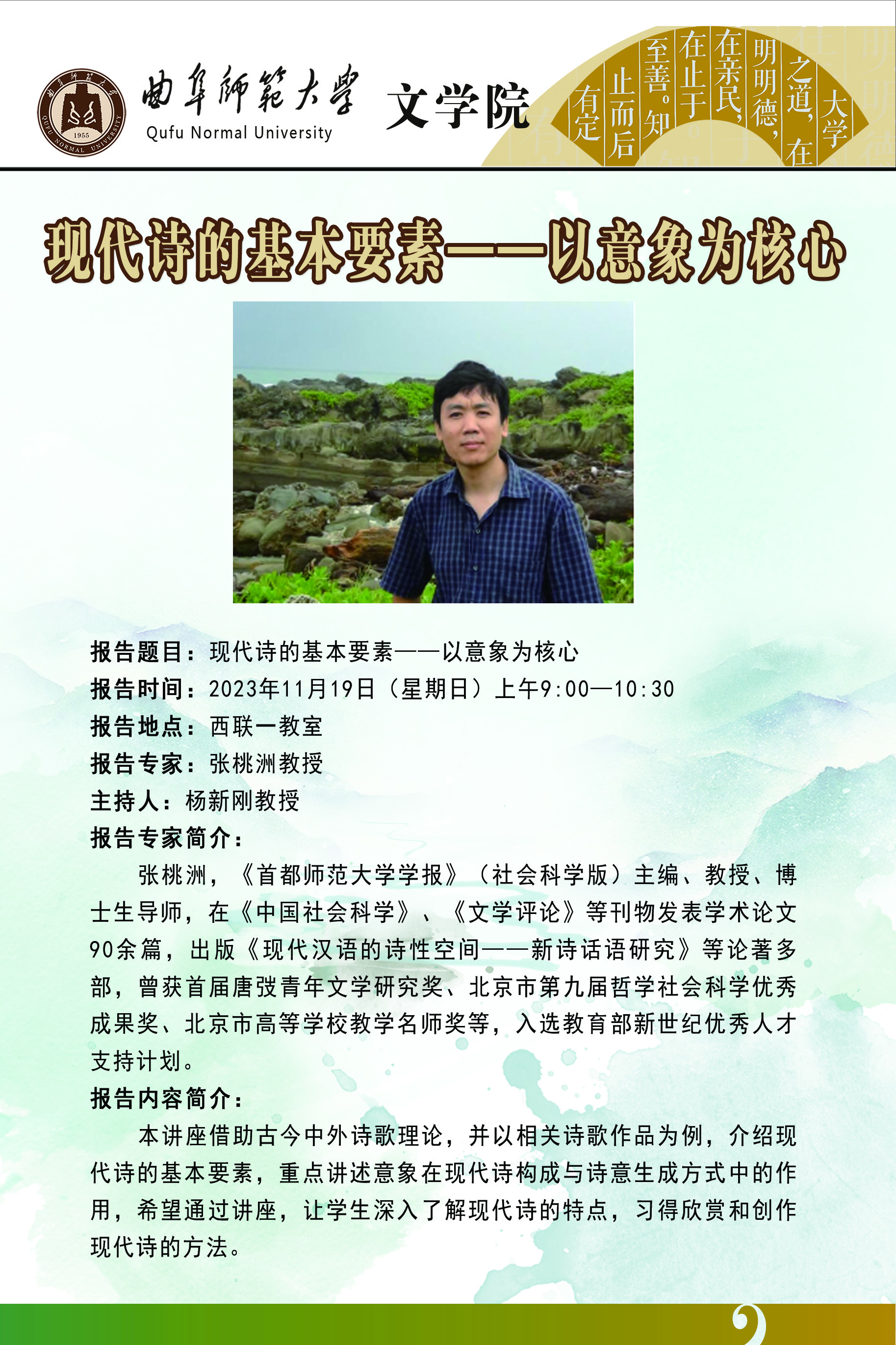 文学院学术报告预告:现代诗的基本要素——以意象为核心