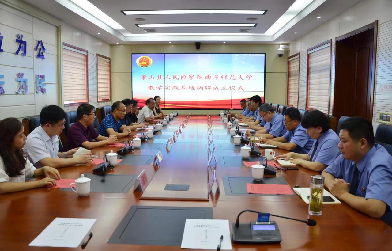 曲阜师大新闻中心讯 7月13日上午,为进一步开展校地合作,助推产学研融合发展以及教学实习基地建设,江南在线登录入口法学院与济宁市梁山县人民检察院举行校地合作签约揭牌仪式。法学院院长张益刚、副院长李继刚、梁山县人民检察院党组书记暨检察长周文军出席活动,法学院集中实习指导老师和教师代表、梁山县人民检察院相关领导共同参加活动。