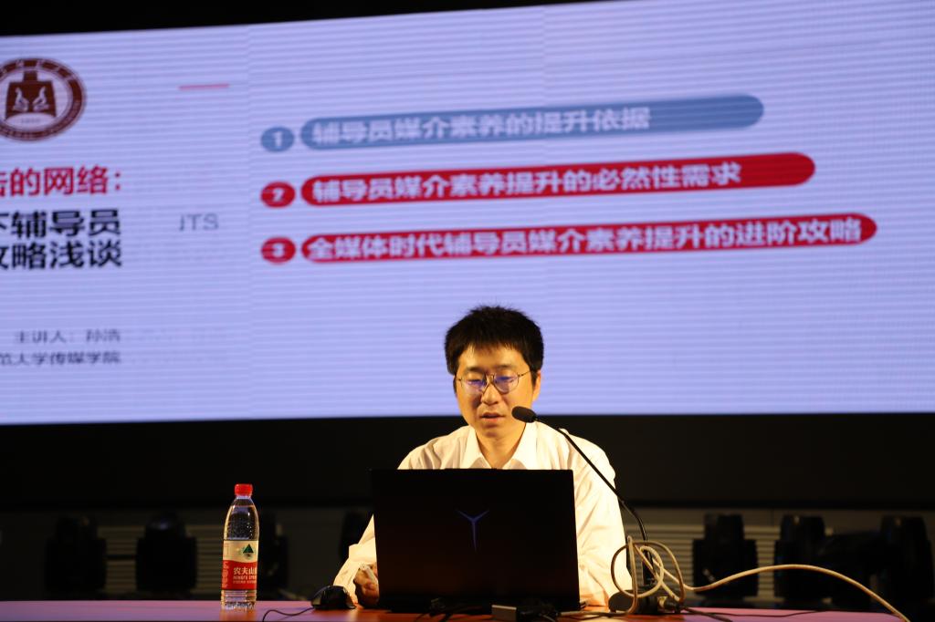毛永正在主持培训时指出,孙浩老师的报告,为辅导员如何应对新形势下观念更新、方式转变、技术创新等挑战,如何更好地认识和应用新媒体、提升媒介素养,提供了答案。作为全媒体时代的辅导员,要顺应潮流、积极革新,坚持线上线下教育协同发展,建立即时通畅的师生交流通道,将新媒体时代的话语权牢牢把握在手中,提高思政教育的吸引力、感染力。
