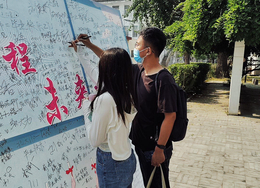 四年光景,细水长流,毕业一瞬,感慨万千。签名墙前,毕业生签下自己的名字,一笔一画间皆是不舍与期待;紫藤廊下,每一张许愿卡片都饱含对未来的期盼和对母校的祝愿。活动中,许多毕业生选择用一段影像纪念他们朝气蓬勃的四年,无数珍贵的瞬间在镜头前定格,谢恩师,忆知己,期未来,都在这一刻凝成对师大的眷恋。