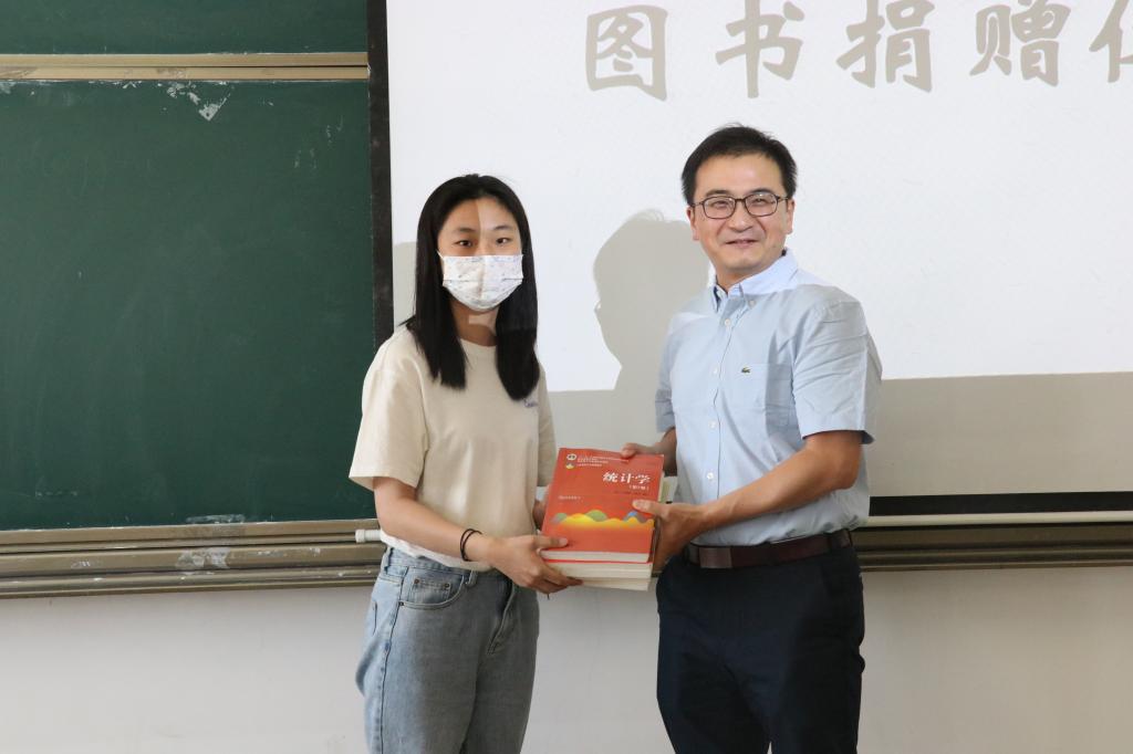 仪式上,毕业生代表邓文静代表学院全体毕业生向学校捐赠图书,孔轶众代表学校接受捐赠,出席仪式的老师共同为捐赠教材的毕业生代表颁发了荣誉证书。