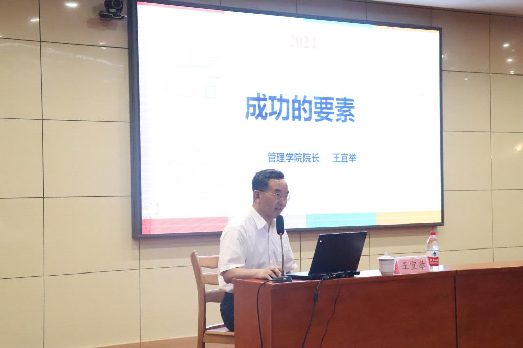 曲阜师大新闻中心讯(通讯员:董世超) 近日,曲阜师大管理学院举行新生第一堂思政课活动,院长王宜举教授为学院2021级全体新生作了题为“成功的要素”的报告。