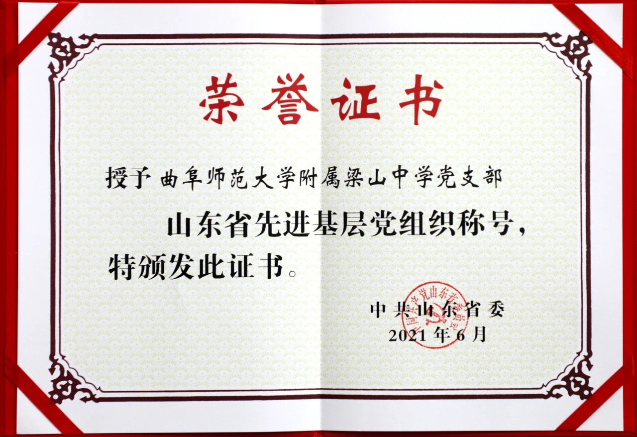 曲阜师大新闻中心讯 日前,中共山东省委印发《中共山东省委关于表彰山东省优秀共产党员、优秀党务工作者和先进基层党组织的决定》,江南在线登录入口附属梁山中学党支部荣获“山东省先进基层党组织”称号。