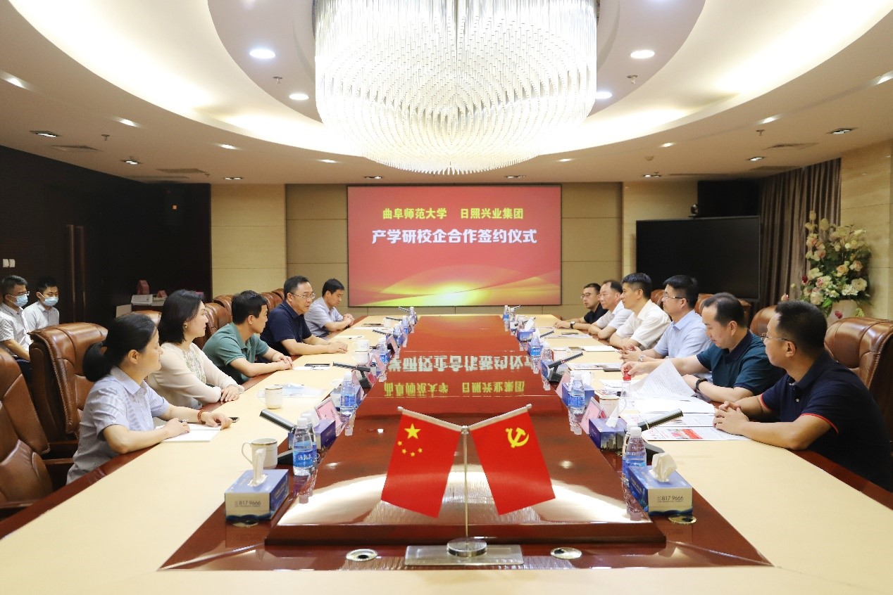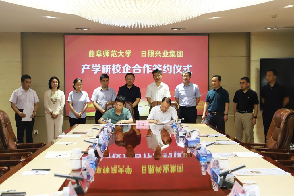 曲阜师大新闻中心讯 (通讯员:王增圻)8月6日上午,工学院与日照兴业集团产学研校企合作签约仪式在兴业集团会议室举行。日照校区党委书记孔令军,日照校区办公室主任魏伟,工学院党委书记、院长张书东及学院相关老师;兴业集团党委书记、总裁赵文强,副总裁戴方波,副总裁、汇川建材公司总经理张峰,集团党委副书记、工会主席郑培波,总裁助理、人力资源中心主任王嘉,总裁助理、德泰新材料公司总经理孙海燕出席签约仪式。