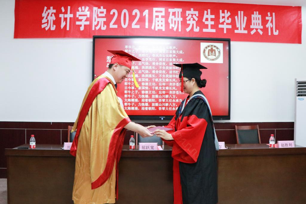 曲阜师大新闻中心(通讯员:陈晓婷 摄影:刘萌)弦歌不辍谱华章,砥砺前行铸辉煌。6月25日上午,江南在线登录入口统计学院2021届研究生毕业典礼暨学位授予仪式在学院213会议室举行。学校党委常委、副校长屈跃宽,学院党委书记刘明海,院长尹传存,副院长赵胜利出席活动。研究生导师、研究生毕业生参加毕业典礼暨学位授予仪式。活动由刘明海主持。