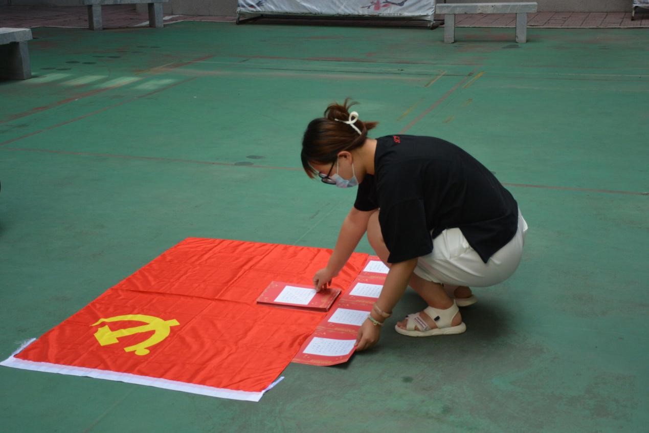 6月19日,文学院的10余名学生在文学院大厅参加手抄红色经典展示活动。文学院学生张萍萍介绍:“1921年中国共产党成立,今年是2021年,是建党一百周年。所以我们摆出‘中国’‘爱心’‘100’等字样。”这项活动将激励同学们不忘初心,接续奋斗,在细照笃行中锤炼自我,在知行合一中主动担当,将伟大精神传承下去,以实干成效为建党百年献礼。